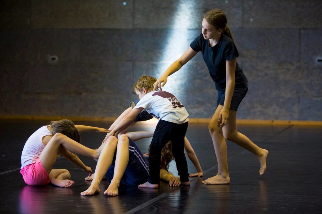Uroniti u svijet kazališta i plesa znači vidjeti i čuti, osjetiti, pomirisati, smijati se ili plakati...i pokrenuti ga! Naša umjetnička i pedagoška struja usmjerena je na interakcijski i participativni princip rada. U ovom ateljeu/radionici za djecu (na zahtjev, u pratnji učitelja i/ili roditelja) razvijen je sustav kroz koji se ide na izvedbeno putovanje i interaktivnu igru. Kroz tehnike plesne i kazališne improvizacije, uz pratnju glazbenika uživo, umjetnici i djeca stvaraju trenutnu kompoziciju s elementima plesa i kazališta te likovne umjetnosti i glazbe. U sat vremena zajedničkog rada i igranja igara koje se temelje na pravilima instant plesne kompozicije, djeca uče o samopoštovanju, prihvaćanju drugih, slušanju, artikuliranju vlastitih ideja te suradnji i grupnoj dinamici. Također, cilj je osvijestiti kod sudionika na koji način kroz ples i pokret možemo komunicirati, pričati priče, probuditi maštu i povezati umjetnike i djecu kroz principe dječje igre. Radimo i na osobnoj i na grupnoj razini kroz različite medije, uzimajući u obzir prirodu fokusa na dijete.